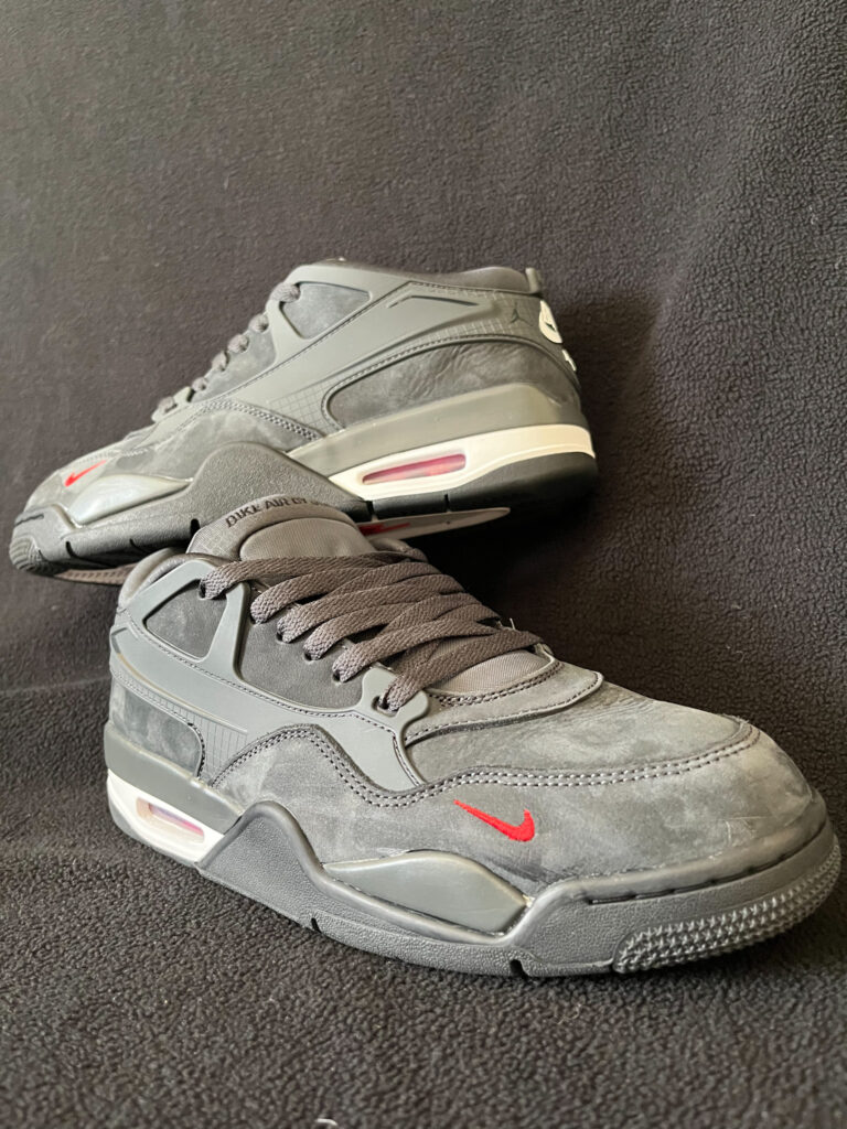 These are the Air Jordan 4 RM SP Nigel Sylvester Driveway Grey colorway. This sneaker was released on August 8th, 2024. Taking a first glance at this sneaker, you'll see that the entirety of the upper is made with suede material. But the suede isn’t the best part. This sneaker also contains lots of special details that make this sneaker unique. At the toe box, we have a red stitched Nike check. As we move further up the sneaker there is a plastic covering that covers the majority of the sneaker. Just like the original Jordan 4, this TPU covering holds the shoe laces. On the back end of the sneaker the TPU piece houses “ Bike Air ” and a Jumpman imprint. We also see Bike Air imprinted again on the tongue of the shoe stating, “ Bike Air By Air Jordan”. This sneaker comes in a shoe box that highlights Nigel Sylvester's most memorable moments. The shoe tissue paper has Nigel's childhood pictures of him in his Grandma's driveway riding a bike. This sneaker comes with an extra pair of white shoelaces and a page of BMX-themed stickers. The origin of this sneaker came from the professional BMXer Nigel Sylvester. His previous sneaker was the Air Jordan 4 RM SP “ Grandma Driveway” which is a green suede upper with a black midsole and outsole. These sneakers were made to tell an amazing story of Nigel Sylvester’s origin and where his BMX career started. Both of these sneakers are made with the intention of all BMXers to ride in style. The Air Jordan 4 RM SP Driveway Grey made it to the Sneaker Gallery due to its amazing story, unique design, and quality features. This sneaker highlights the origin story of Nigel Sylvester. It's always amazing to see how the start of someone's passion turns into a success story. It allows people to be inspired while enjoying the essence of shared passions. Nike and Nigel did a great job creating a story and a sneaker that the community can enjoy. So if you haven’t already, get a pair of Air Jordan 4 RM SP Driveway Grey. So you can continue to Fuel Your Creativity Through Sneakers.